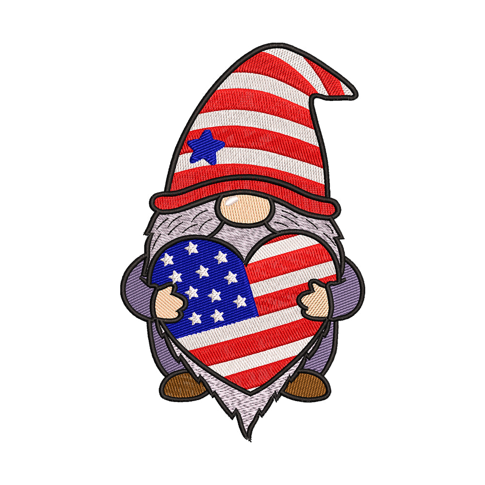 Patriotic Gnome with Flag Heart Embroidery..